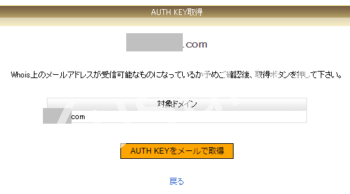 そもそも、AUTH-KEYはWHOISに登録されたアドレス(みんDOM)へメールで知らされるため、WHOIS代行解除できていない時点で詰んではいる。
