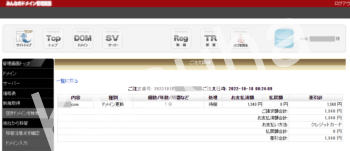 新ドメイン取得に先立って、他にも期限が迫ったプライベート運用中のドメインが1つあるため、先にこれの更新処理を行った。管理画面からカード決済で1年分の更新料を支払った。