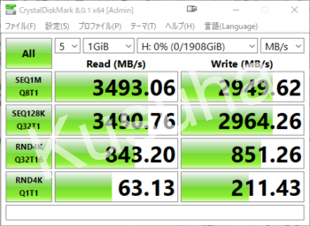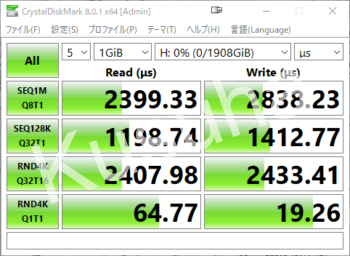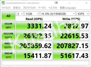 で、よく見かけるCrystal Disk Markの結果などは、ネット上に溢れるほどあるものと変わりなく、期待通りなのでさらっと記した。