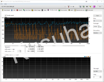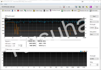 200GBファイルの読み書きテスト。読み込みは2600MB/s付近で清一色。
