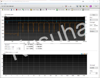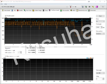 シーケンシャルは3493/2950で、ほぼカタログスペック通り。同等他社製品と比較しても負けていない。