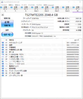 容量不足となったので購入した2TBのSSD:Transcend TS2TMTE220S